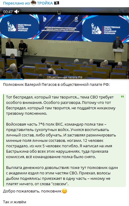 Полковник Валерий Пегасов в общественной палате РФ: