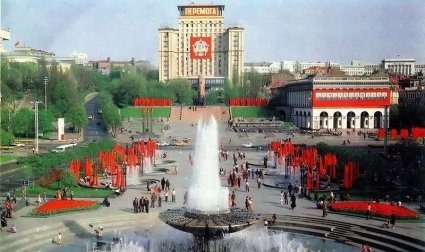 Странно, при словах "Киев" почему-то вспоминается герб и гимн УССР. А еще вычищенный, украшенный алыми стягами Крещатик. Счастливые лица прохожих. Детские коляски. Площадь Октябрьской революции - еще та, что была до Кучмы, без титек и фалоса во лбу.