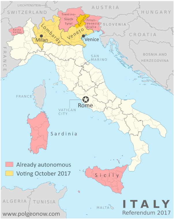 Новости итальянского сепаратизма/автономизма. В Ломбардии и Венето прошли референдумы о расширении автономии этих областей. Пока еще в составе Италии.