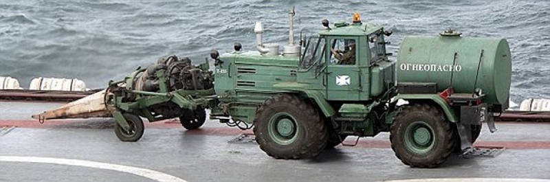 Одной из таких удивительных машин стал трактор, замеченный на палубе авианесущего крейсера «Адмирал Флота Советского Союза Кузнецов».