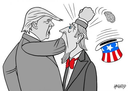 То, что реакция получилась юмористической, это нормально. Это адекватная реакция здорового человека на произошедшее. Ну и вдвойне смешно становится как в свете реакции поклонников и поклонниц Клинтон, а так же российских либералов и жителей Украины, у которых истерика по поводу произошедшего так же немало доставляет. Реальные последствия выборов 8 ноября начнут проявляться только в 2017-м году, ну а пока можно лишь посмеяться над тем, что произошло и как это произошло, потому что это один из самых больших приколов 2016 года. Американская карикатура по этому поводу как обычно не подводит.