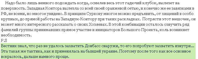 Одна из двух описанных фамилий уже попадала в поле зрения и кто это такое и что такое известно. С кем связана, и на кого завязана, известно. Однако к этому добавились свежая весть, от тех, кому Вестник давно и безоговорочно доверяет многое. Как и ранее, не важно как, не важно кто, откуда (главное, что завсегда приходят, крайне интересные известия). Полученное, можно дополнить более широким тезисом.