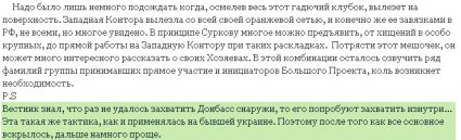 Суть в этом состоит в том что персоналии не просто под Оранжевые, но мало того, работают по схеме озвученной куратором(таких системных совпадений, с точки зрения вероятностей не бывает). На кого подвязан куратор Донбасса, уже многим понятно, теряющий мех половичек дергается, пытаясь шкодить, (просто еще не подняли тему "типающегося меньки", тогда половичку совсем плохо придется, он и так дымится) стараясь провести то, что Лев четко охарктеризовал, как антитезу. На кого подвязан Иа(не имеющий проблем с Сурковым), сказано давно. То что игрушки с политесом в Луганском узле воняют этим же скунсом, тоже не бином.