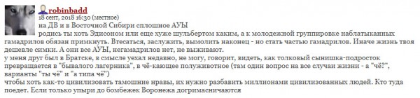 (д) В наихудшем положении окажется разнообразный мелкий люд, болтающийся чуть выше "пролов", но без шансов попасть в "господа". Он станет едой. Разумеется, его защиту формально будут обеспечивать официальные силовики, но по остаточному принципу, а на защиту "земляческих" ополчений ему, по понятным причинам, расчитывать не придется.