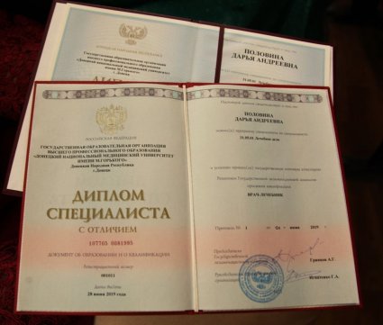 "Впервые вузы ДНР выдали выпускникам дипломы российского образца. Церемонии вручения состоялись в Донецком национальном медицинском университете имени Горького, где выдано 338 соответствующих документов и в Донбасской национальной академии строительства и архитектуры – 27 дипломов", - сообщает пресс-служба Министерства образования и науки Донецкой Народной Республики.