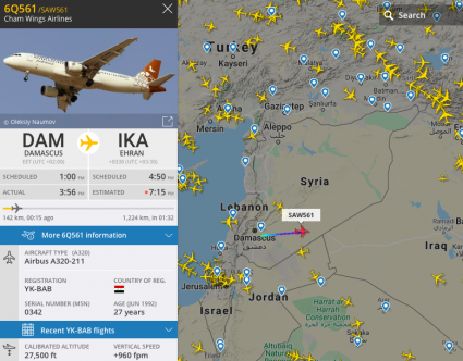Судя по графику поворота, скорее всего под угрозой оказался именно сирийский А320 авиакомпании Cham Wings.