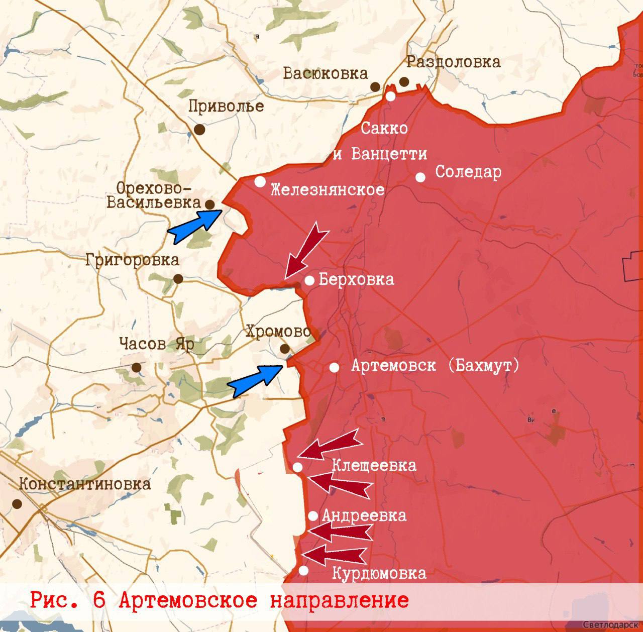 На Артемовском направлении все стабильно, наша армия контратакует, чтобы вернуть позиции и высоты, отбивает попытки ВСУ вновь продвинуться у Клещеевки. У Берховки атаки ВСУ нашими отбиты.
