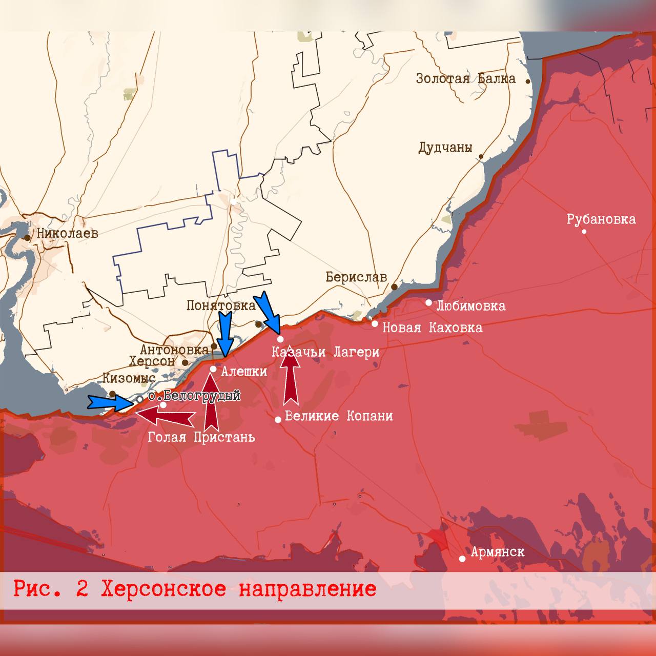 На Херсонском направлении ВСУ пока не рискуют десантировать большие силы на наш берег, но продолжают наращивать интенсивность разведок боем и обстрелов. Была попытка высадиться у Казачьих Лагерей, ещё одна группа замечена на Алешкинском острове. Все группы ВСУ были поражены.