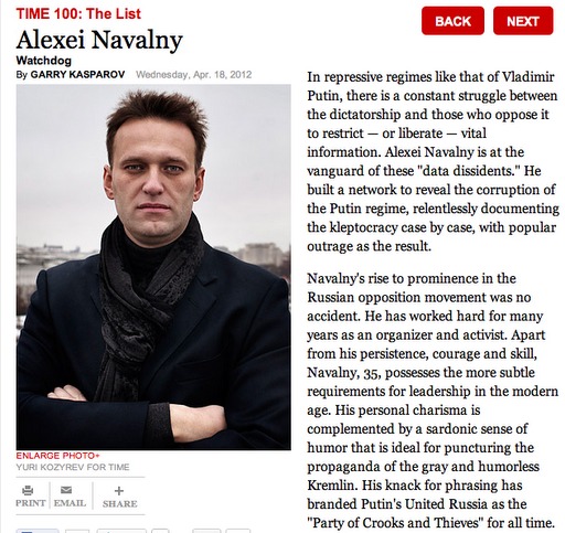 К тому времени начинающий «борец с коррупцией» уже был исключен из «Яблока» за «нанесение политического ущерба партии... и националистическую деятельность». Навальный принимал участие в «Русских маршах», являлся сопредседателем национал-демократического движения «Народ», сотрудничал с такими националистическими организациями, как ДПНИ А. Белова-Поткина (запрещена в РФ за экстремизм) и «Великая Россия» А. Савельева.
