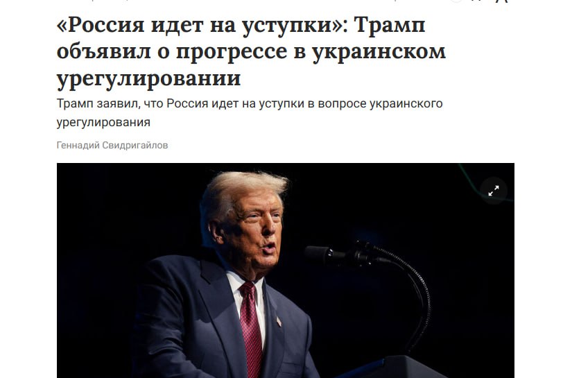 Россия «идет на уступки» в переговорах по Украине, «они прекращают боевые действия и не захватывают еще больше земель» — Трамп.