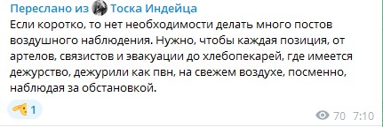 Последние две недели противник активизировался и предпринимал попытки стабилизировать ситуацию в восточной части Константиновки: используя плохие погодные условия, заводил пехоту в подвалы частного сектора, а также несколько раз пытался суициднуться продвинуться в направлении Предтечино.